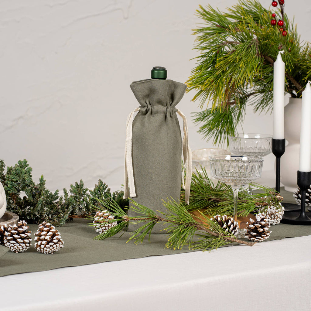 Linen Wine Gift Bag: Green