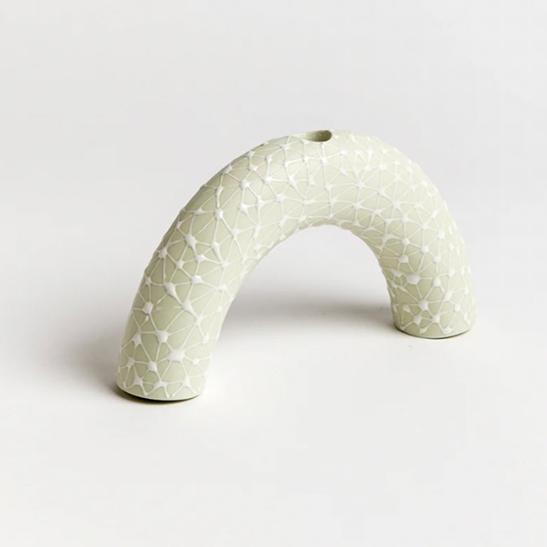 This candle holder is made from colored porcelain with the slip-casting technique and hand-decorated in Israel by Israeli ceramic artist Maiyan Ben Yona.