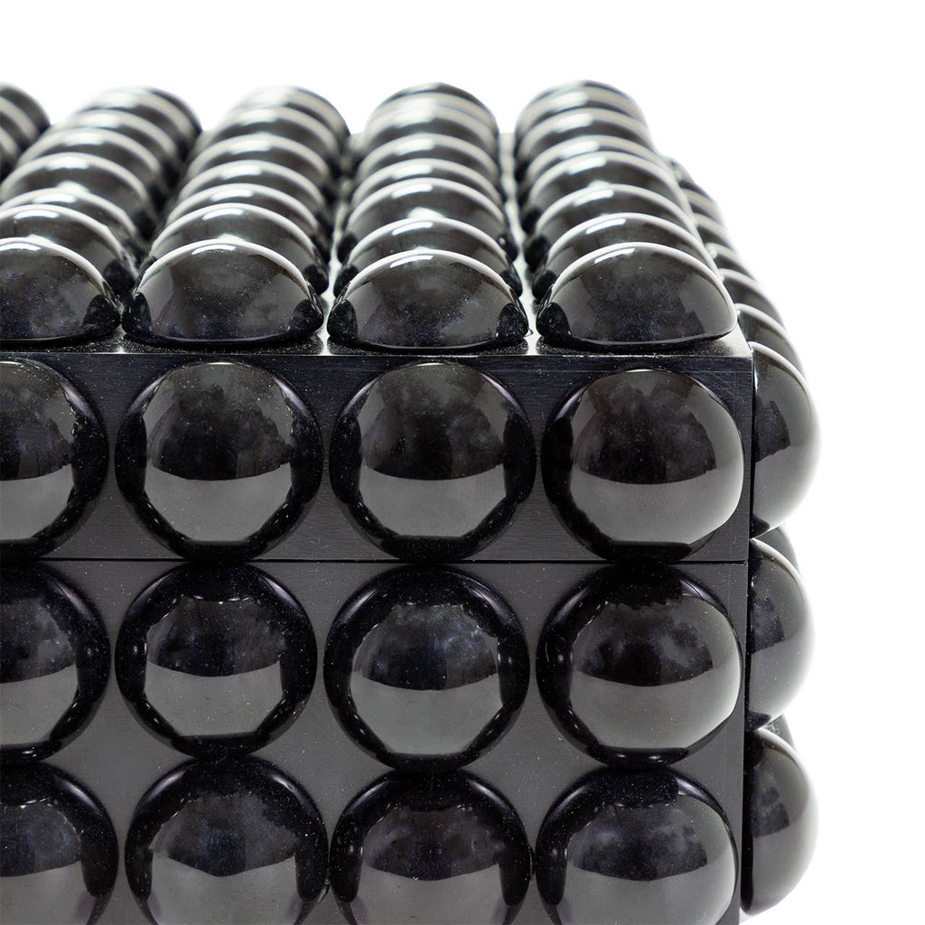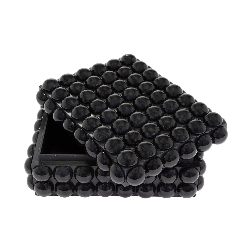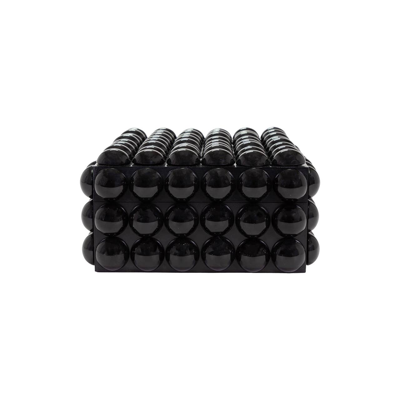 The sophisticated Oberon Black Resin Decorative Box masterfully merges contemporary design with practical functionality, seamlessly transforming any space it graces. This striking storage solution features an eye-catching raised bubble pattern that adorns both the box and its removable lid, creating a mesmerizing geometric display.